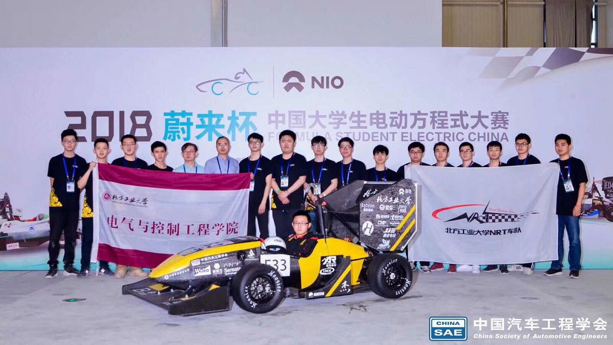 樊生文、金鹏、陈智刚、范晶晶四位老师共同指导的北方工业大学电动方程式赛车队(NRT),参加了“蔚来杯中国大学生电动方程式大赛(FSEC) ”,与全国52支车队同台竞技,并最终荣获总成绩优秀奖。这是金沙官方网站首次参加该项赛事,赛车队20多名成员来自金沙官网
