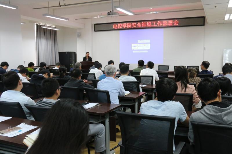 在博远楼452召开全院教职工大会,就近期安全稳定工作进行了部署。院党委书记李颖宏、院长王力、院党委副书记史宁和全院教师到场参加。