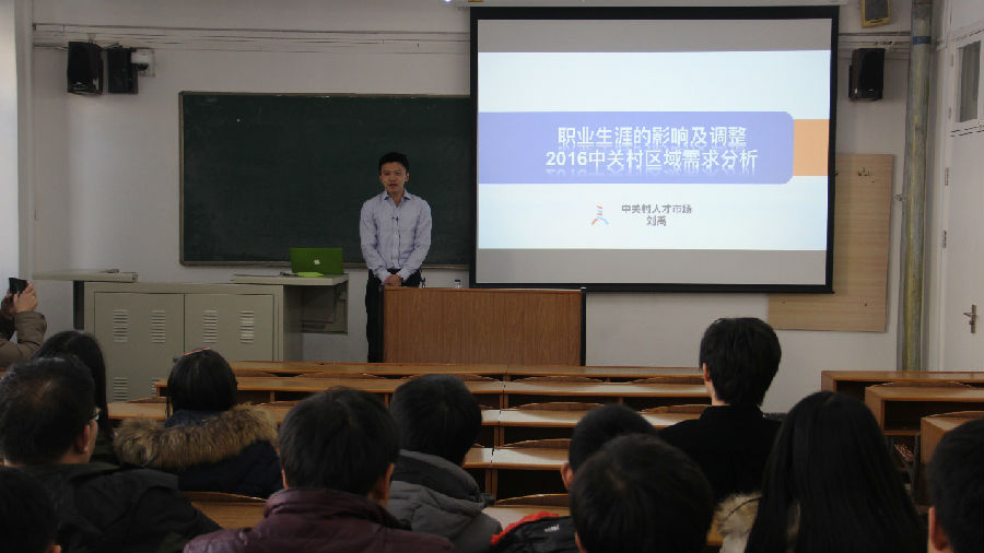 在励学楼314举办了协同、创新、发展职业规划讲座(二)。活动邀请中关村人才市场的刘禹主任做了题为《职业生涯的影响及调整——2016中关村区域需求分析》的报告。讲座由金沙官网