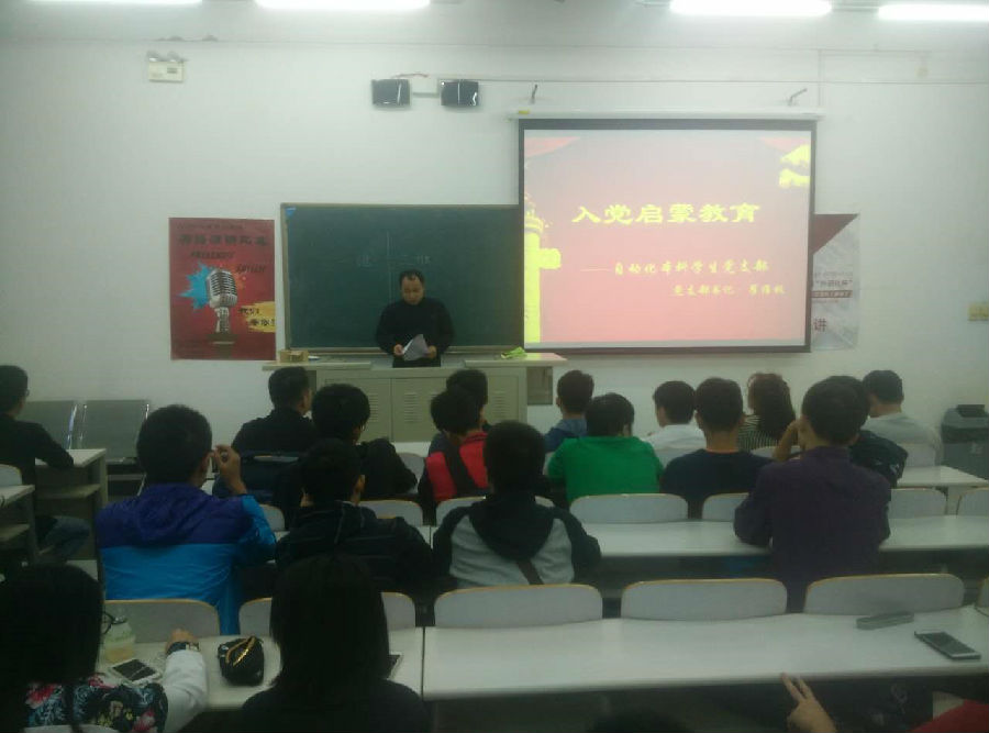 支部书记翟维枫老师向同学们介绍了党的相关知识、入党条件以及入党流程等一系列同学们关心的问题。党支部两位优秀的大四学长向同学们分别介绍了自动化和交通两个专业的基本信息、就业前景等,分享了自己四年来对专业的思考。