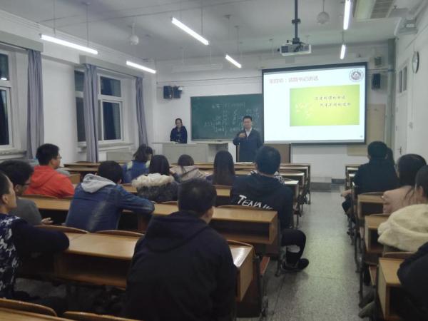 班会由团支部书记刘媛媛主持。首先由学长李达、马斌以及学姐赵萌分享了自己在大学阶段的学习经历以及保研和考研准备工作,特别提到了大学生活收获的不仅是知识,更多的是为人处世的交流能力,以及保持良好的心态最重要。随后班导师刘蕾以学姐的身份跟大家讲述了自己的考研经历,着重讲述了考研所包含的四个科目:数学,英语,政治,专业课如何复习,如何提高自身的综合素质以应对考研复试和就业面试。本班学生代表韩雪薇、姜力、张明月、姜午阳和李智浩也分别就自己对未来“就业,考研,出国”的选择情况陈述了自己的观点,做好规划,不要给自己留下遗憾。最后由隋书记总结发言,他指出在异常关键而又极易导致同学迷茫的大三时期,应该多多与学长学姐交流,或访问高年级同学,参考他人的未来规划,逐渐确立好自己的方向目标;并提出考研是一种高形态的就业,唯有拥有过硬的综合素质和突出的特点,方可考上理想的学校,铺好未来的道路;也鼓励对未来还存有迷茫的同学尽快确定目标,并为之努力奋斗。