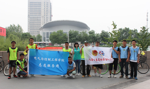 为倡导“低碳环保、绿色出行”理念, 5月28日下午,金沙官网 学生志愿者与石景山区团委青年汇联合开展了骑行环游宣传活动。