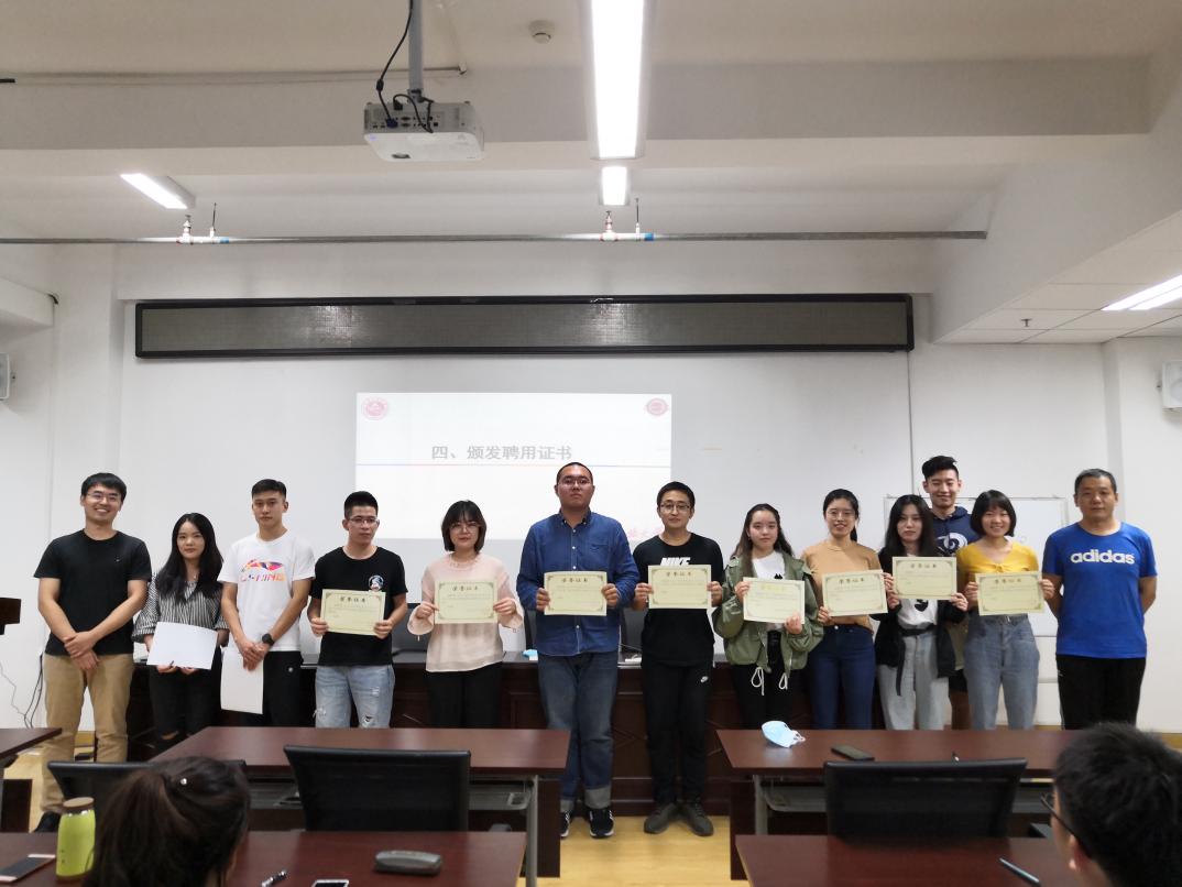 第六届研究生换届大会在金沙官方网站博远楼452隆重举行,参加大会的有研会指导老师金鹏老师、修伟杰老师和研究生会全体成员。