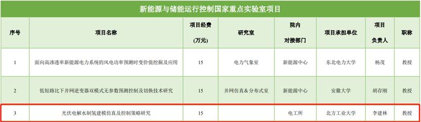 表1 新能源与储能运行控制国家重点实验室项目