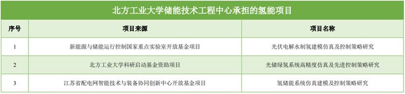 表2北方工业大学储能技术工程中心承担的氢能项目