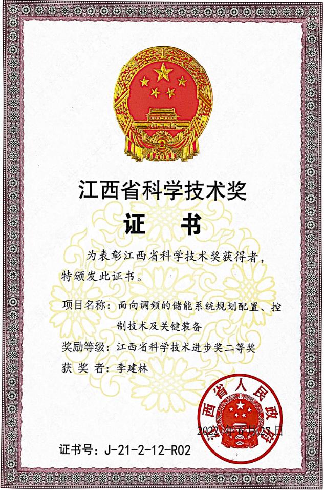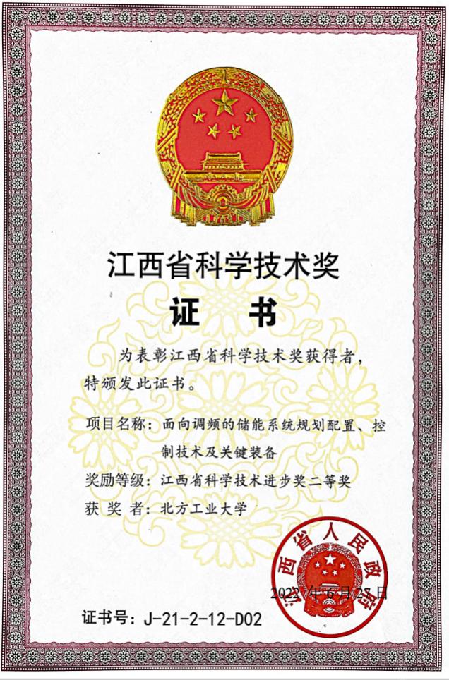 江西省科学技术奖,是江西省人民政府根据江西省科学技术奖励办法,对为该省科学技术进步、经济社会发展做出重要贡献的科技工作者和组织给予的奖励,是江西省科技领域最高荣誉。该奖项的获得,体现了社会各界对金沙官方网站在储能调频领域的工程和科技研究水平的广泛认可。