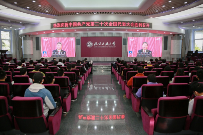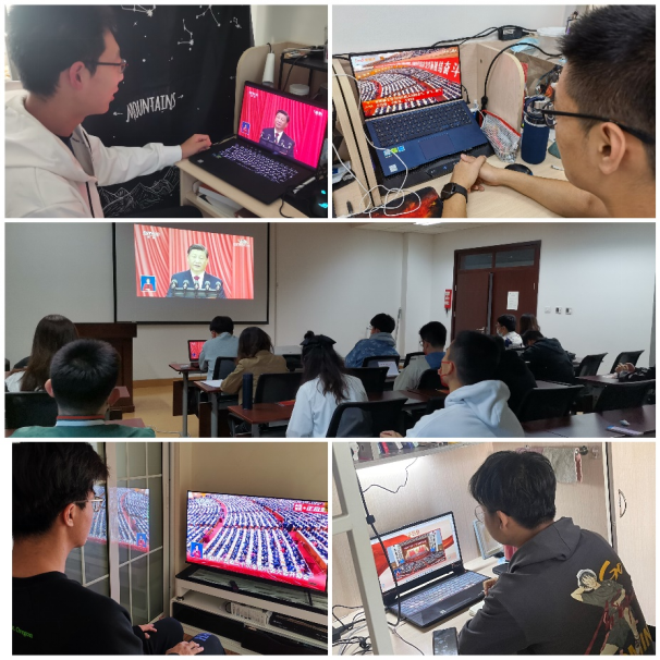师生通过电视、网络等多种方式收听收看开幕会盛况,第一时间学习、领会党的二十大精神。