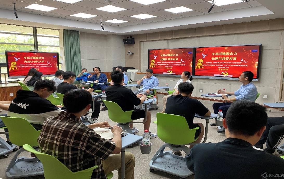党委副书记王磊、电气研党支部书记刘欣博、能源研党支部书记金鹏及学生党员代表围绕党建、学习、科研、就业等情况进行深入交流。