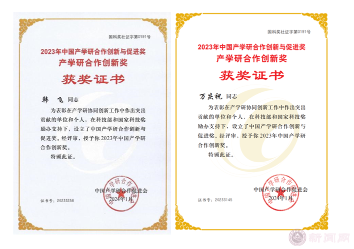 万庆祝老师被授予“中国产学研合作创新奖(个人)”。此奖项旨在表彰通过高水平科技自立自强和产学研深度融合,勇于创新、勇于实践,社会效益、经济效益等方面业绩突出,有完善的技术创新体系和成功案例的个人。