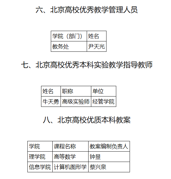 日前,北京市教育委员会公布了2023年度北京高校本科教学项目建设评选结果,金沙官方网站在教学名师、教学改革、课程建设、教材课件教案、育人团队、学科竞赛和实验指导、教学服务保障、高水平教研室、实验室和协同育人平台建设等14类项目中共取得26项(人员/团队)成果,现将评选结果公布如下: