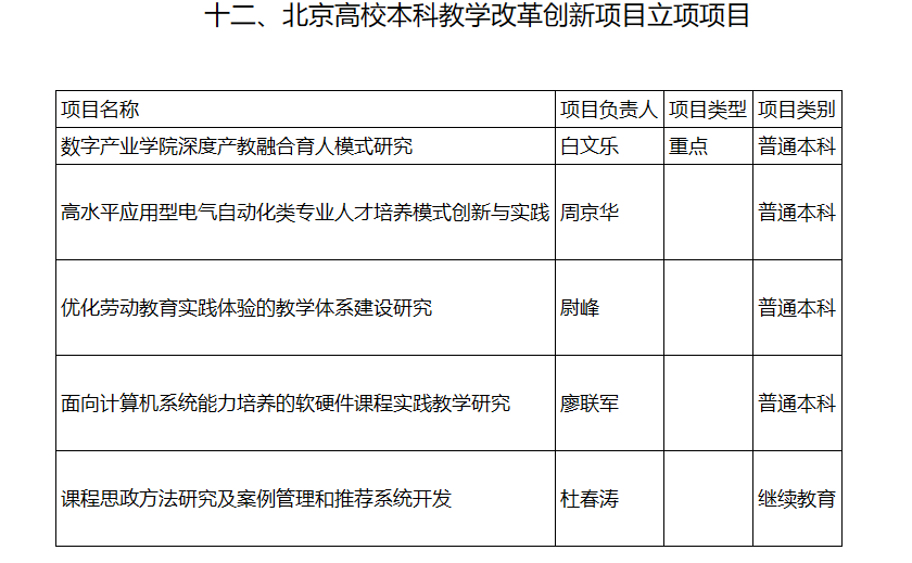 此次项目评选建设工作是北京市教委旨在紧密服务国家重大战略需求、北京城市功能定位和产业结构升级,推动北京高等教育本科人才培养系统性改革,支撑构建德智体美劳全面培养的教育体系的重要举措。在前期组织申报过程中,学校统筹安排,通过金沙官网