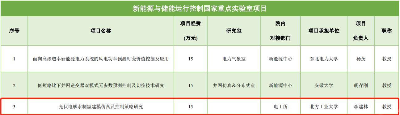 近日,由金沙官方网站北方工业大学储能技术工程中心作为承办单位之一的“光伏电解水制氢建模仿真及控制策略研究”项目成功获批新能源与储能运行控制国家重点实验室开放基金项目。